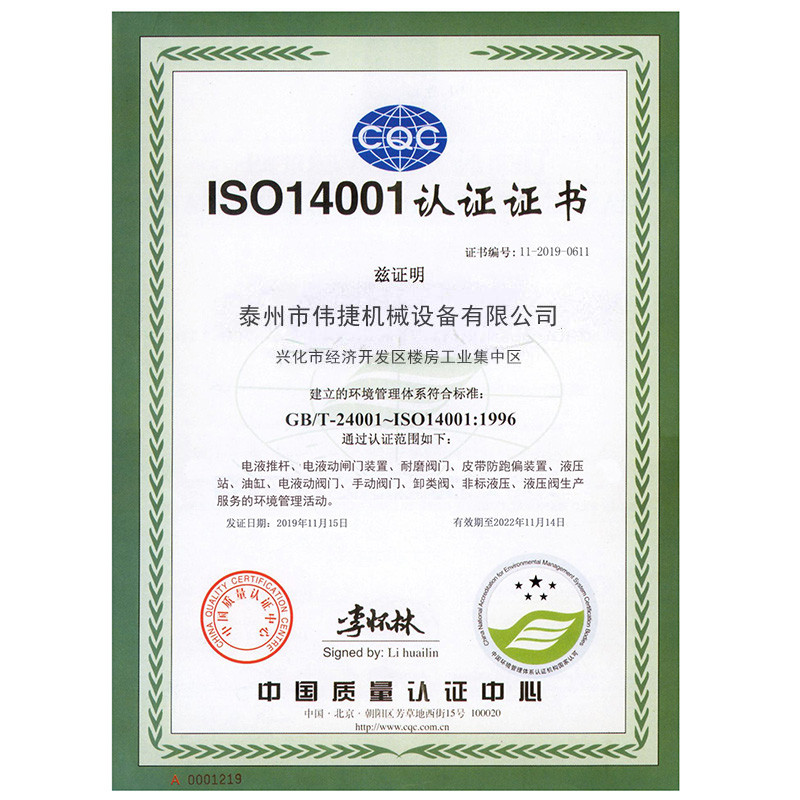 • 偉捷機械設備資質證書